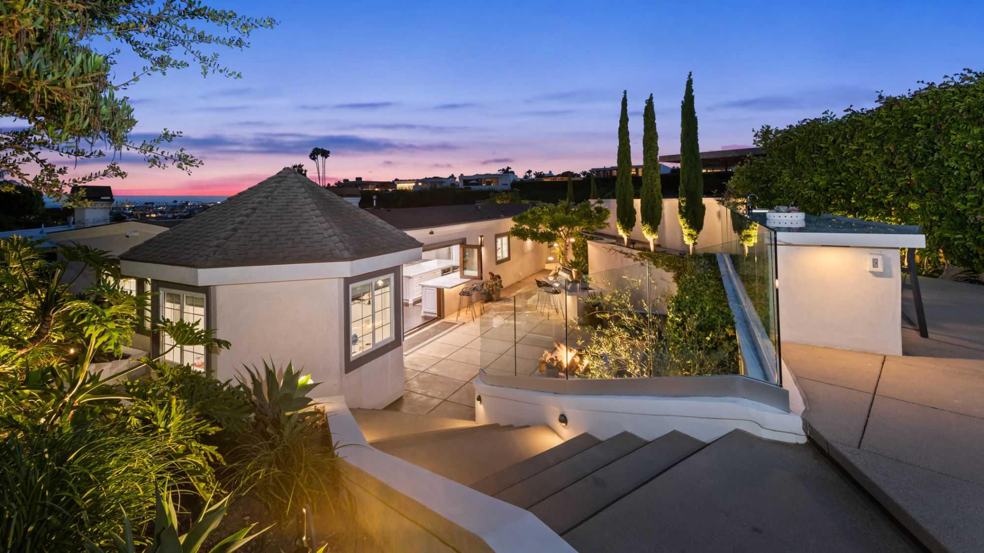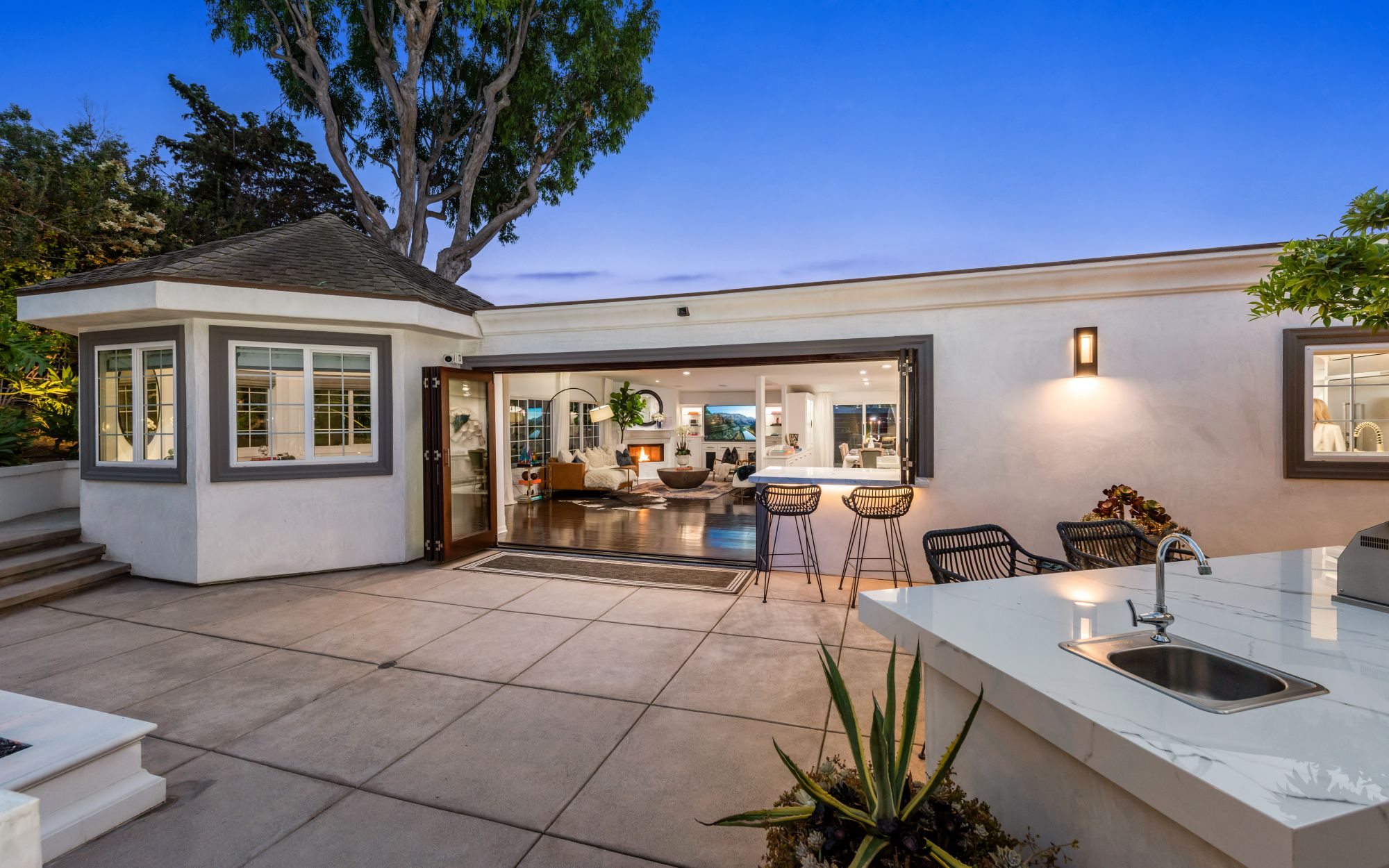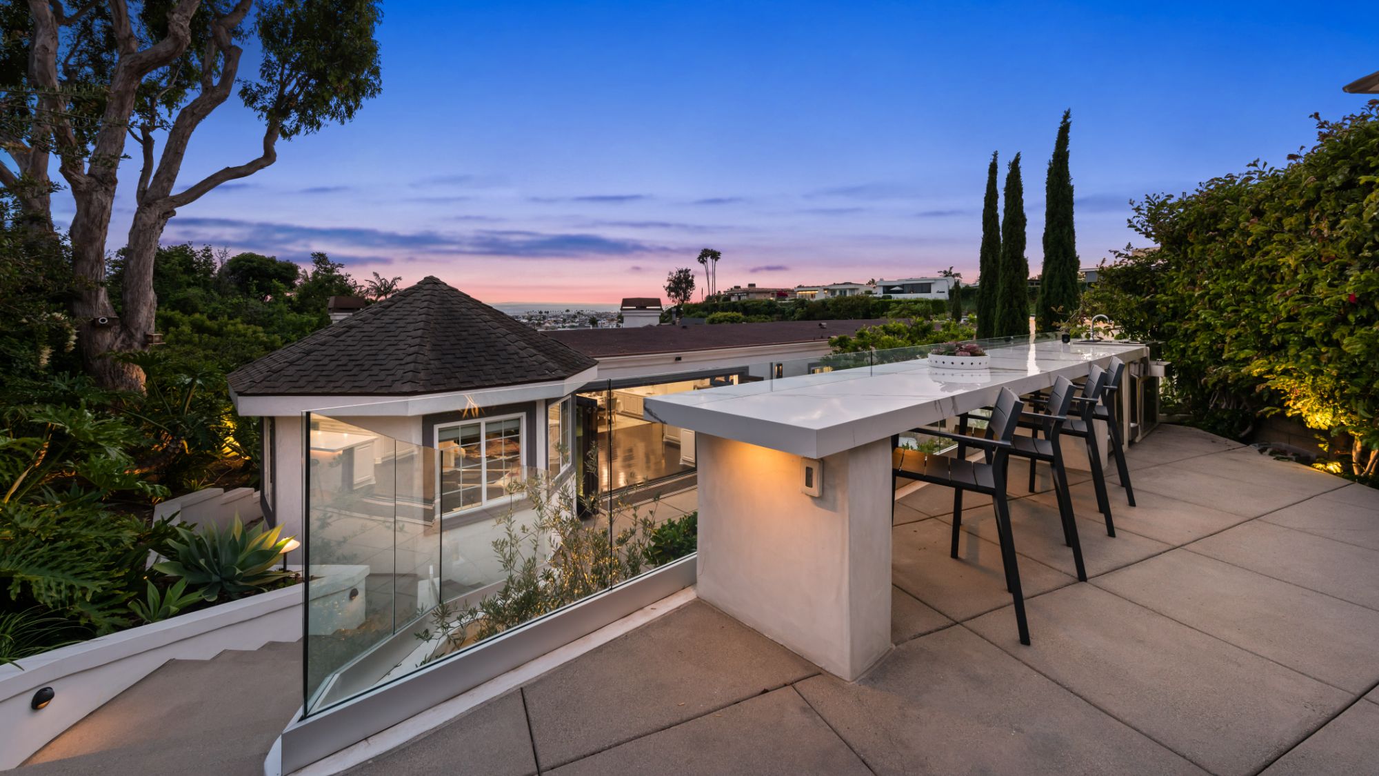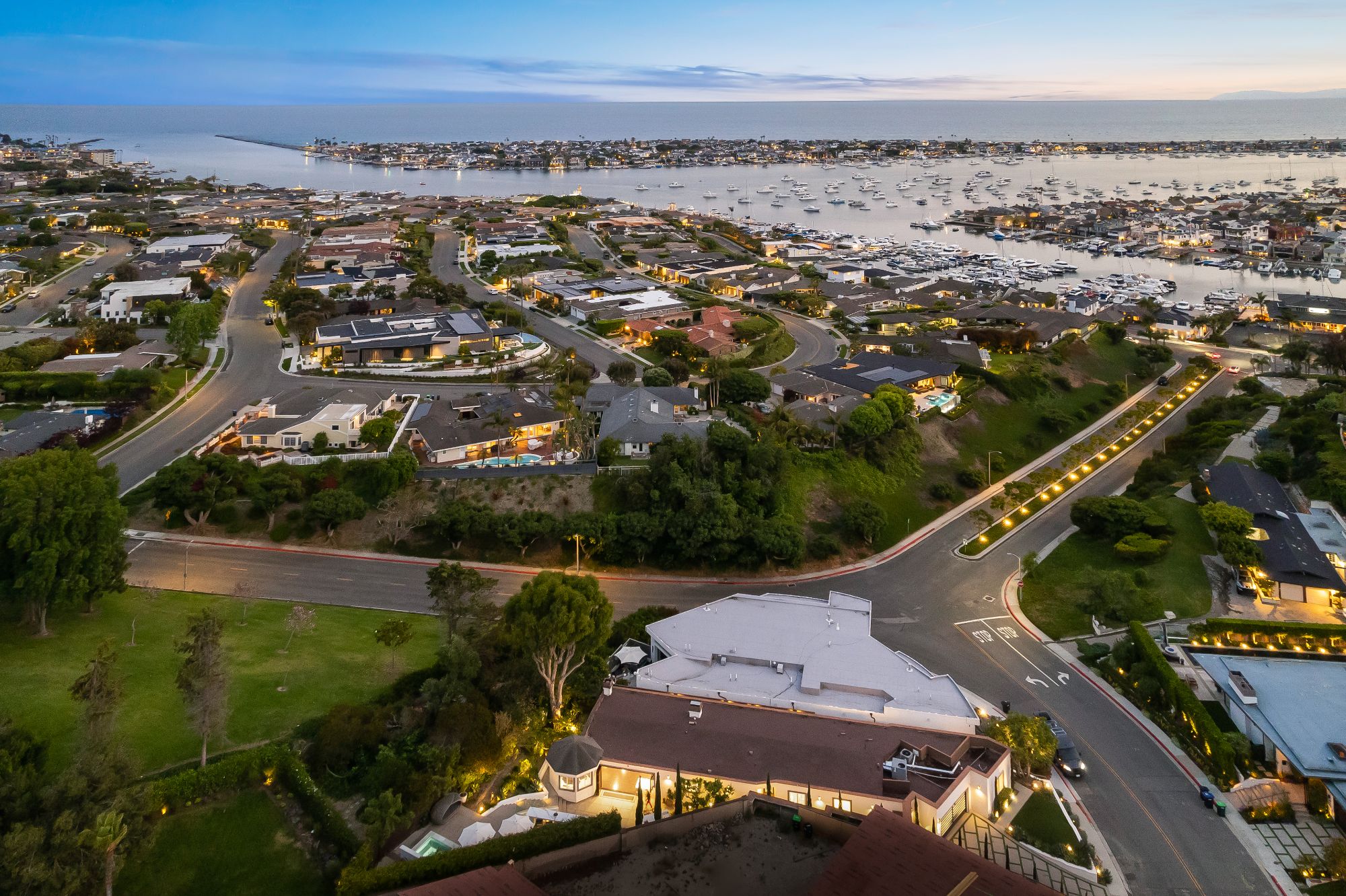 Tucked away in the highly sought-after community of Irvine Terrace, Corona Del Mar, this single-story gem offers ultimate privacy behind gated entrances and lush foliage. Its indoor-outdoor open-concept design embodies the essence of California living, perfect for entertaining. Abundant natural light fills the living spaces, complemented by two fireplaces for a tranquil atmosphere. The gourmet kitchen showcases exquisite finishes, including a 13' waterfall marble island, two Miele ovens, a built-in Miele espresso station, refrigerated drawers, an ice maker, and a wine refrigerator. The office space, adorned with custom-built-ins, provides an ideal setting for remote work. The chic primary en-suite bedroom features silk designer wallpaper, linen drapes, and an Italian lime wash brick wall that opens into the primary bathroom, accentuated by a leather marble waterfall countertop, oversized RH mirrors, and a spacious walk-in shower with Starphire frameless glass and Kohler fixtures. The toilet room is adorned with Christian Lacroix wallpaper. Thoughtfully designed, the original three-bedroom layout has been transformed to suit a luxurious California lifestyle. One bedroom now serves as a gym, while the second bedroom has been converted into a stylish fitting room. The outdoor areas boast lush greenery, designer lighting, a fire pit surrounded by built-in seating, and an elevated space offering breathtaking views of Catalina Islands and the harbor. Here, you can relax at the oversized bar or unwind in the oversized spa with a cascading waterfall. The house features a comprehensive sound system that extends throughout, including the outdoor areas, and security is ensured with multiple Nest cameras. This property is ideally located near Fashion Island, upscale dining, sandy beaches, and Newport Harbor, epitomizing the ultimate California lifestyle.