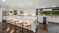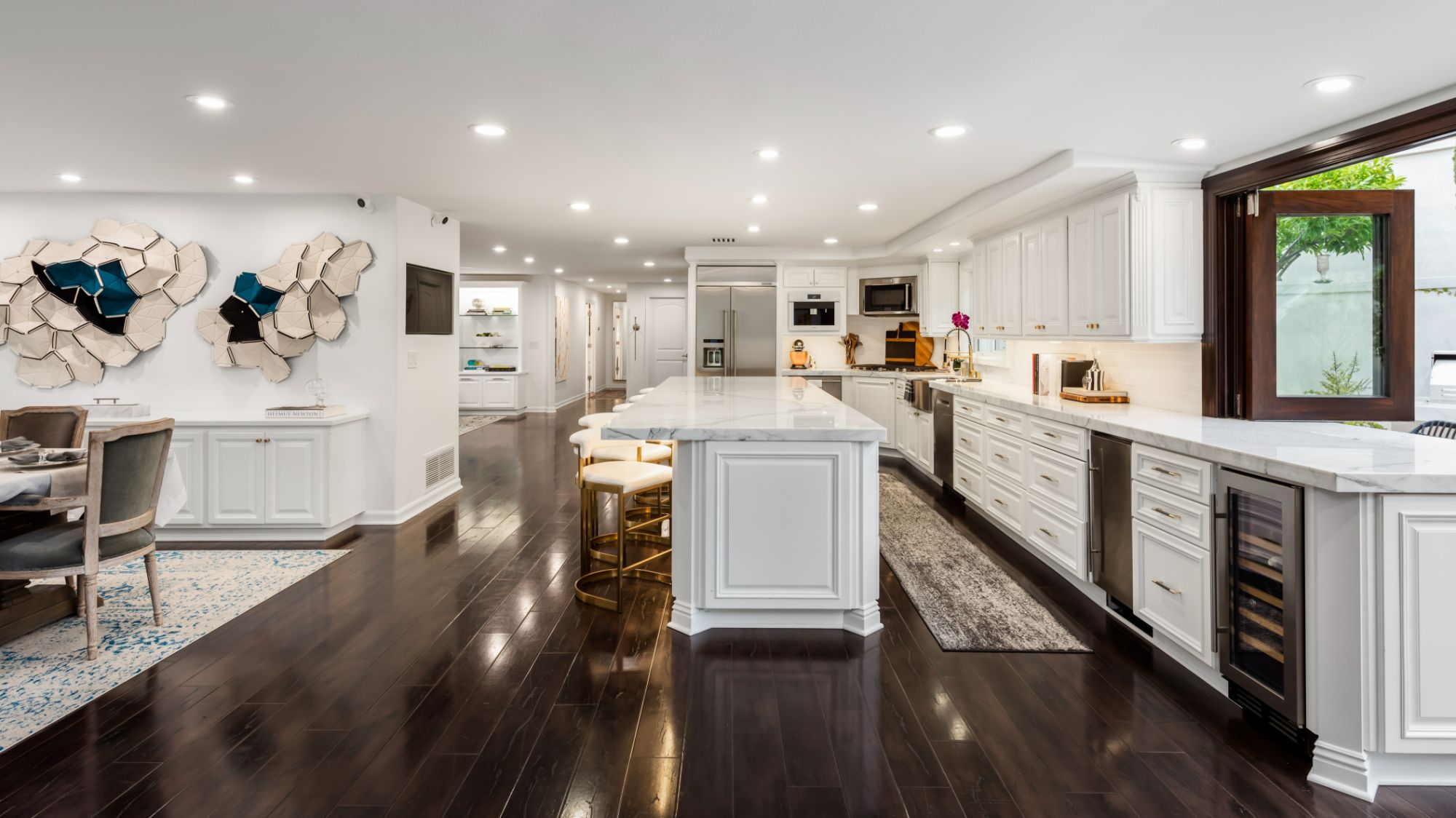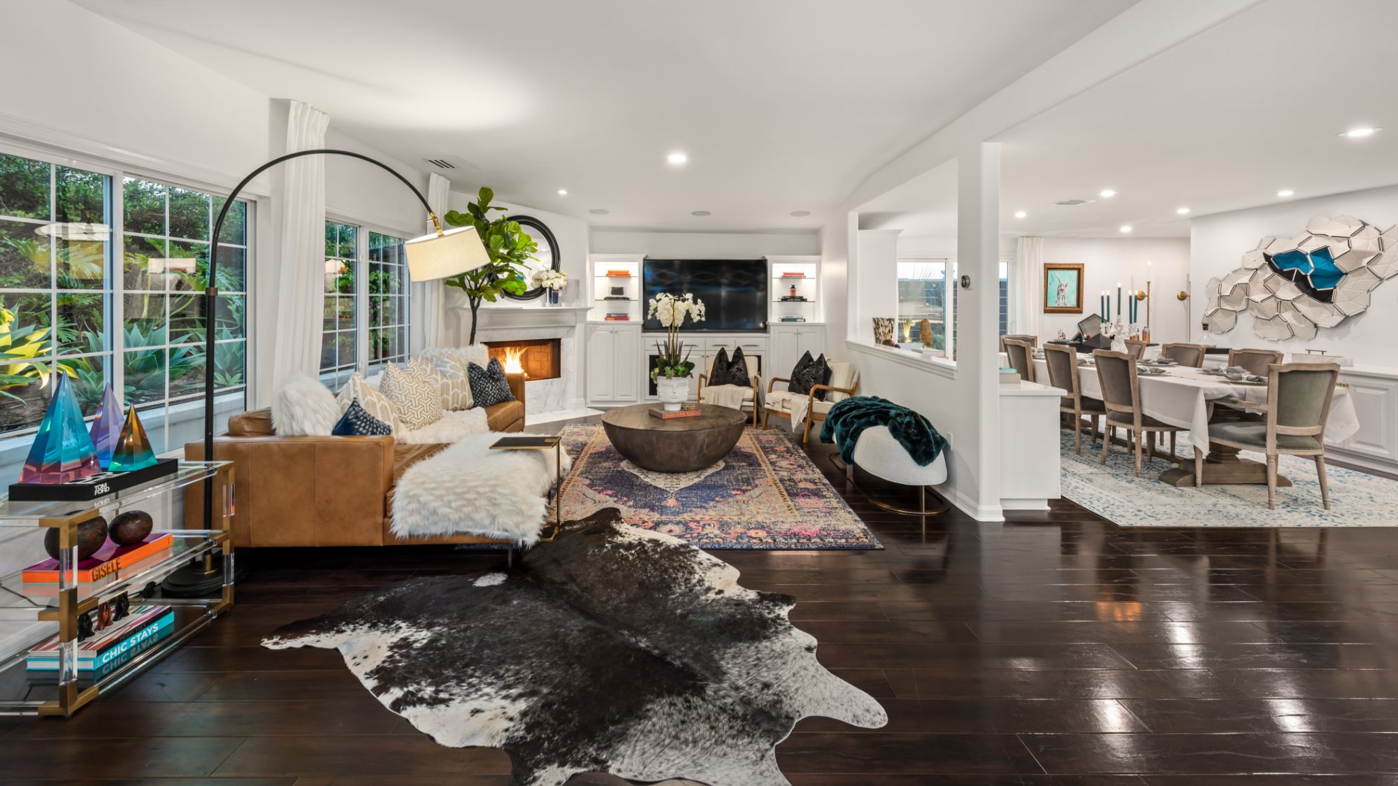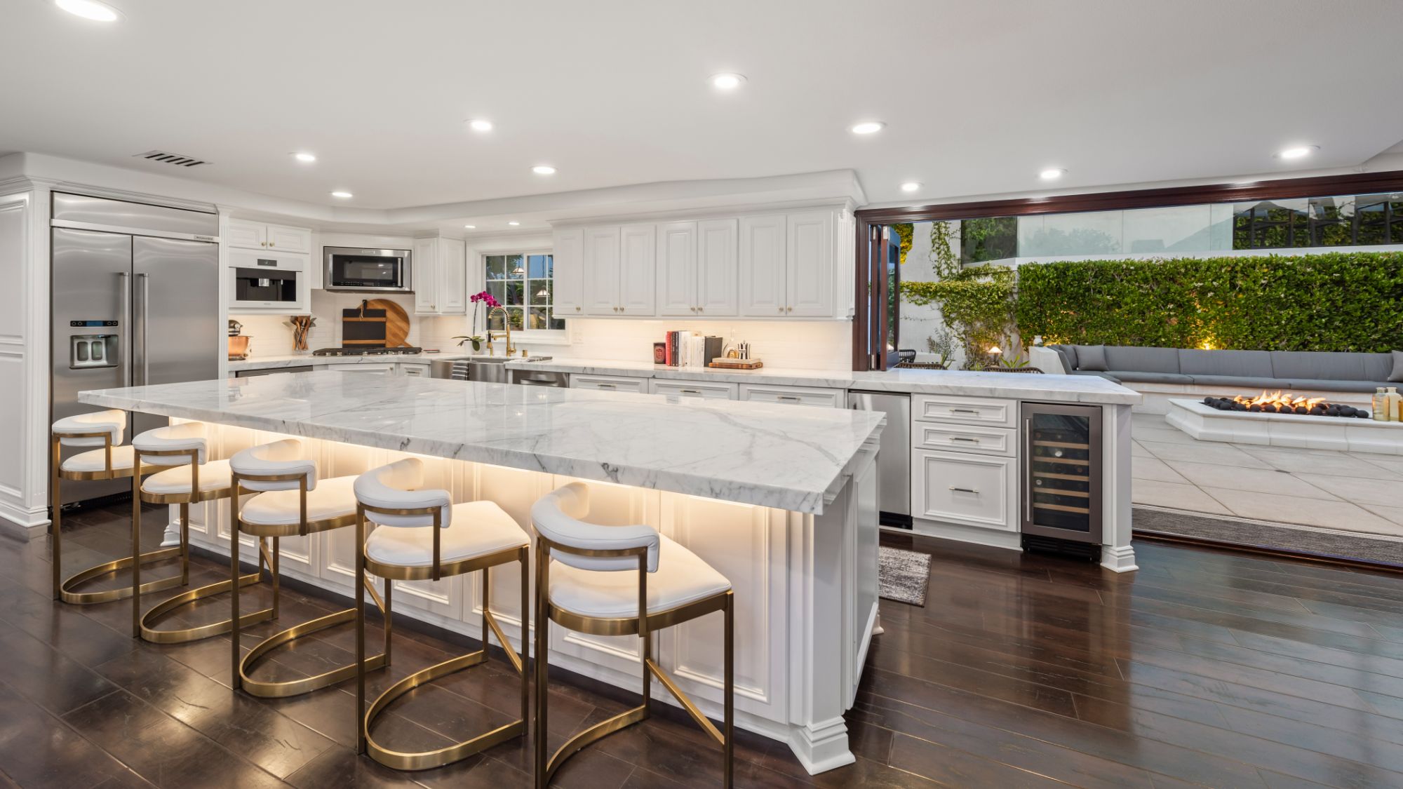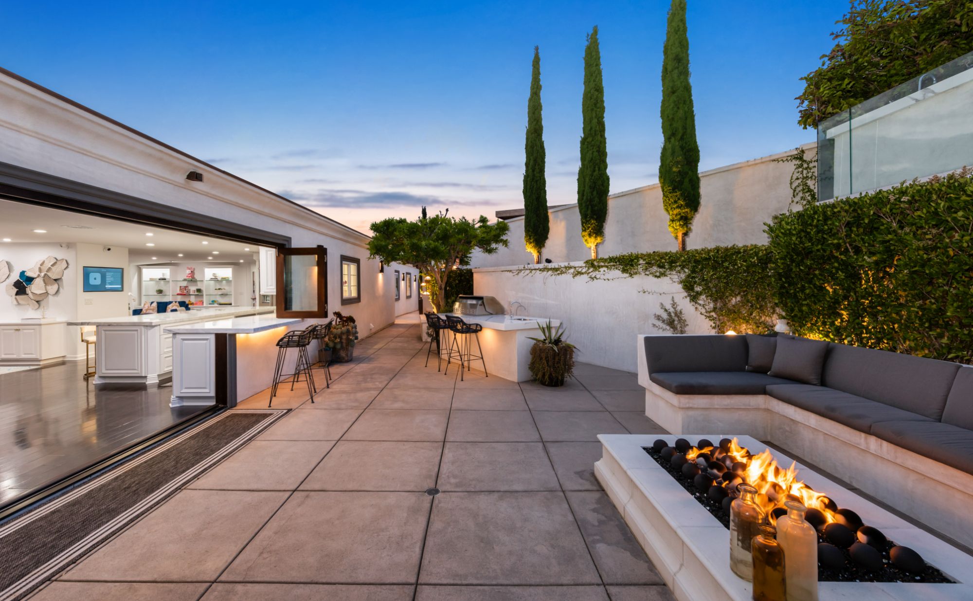 Tucked away in the highly sought-after community of Irvine Terrace, Corona Del Mar, this single-story gem offers ultimate privacy behind gated entrances and lush foliage. Its indoor-outdoor open-concept design embodies the essence of California living, perfect for entertaining. Abundant natural light fills the living spaces, complemented by two fireplaces for a tranquil atmosphere. The gourmet kitchen showcases exquisite finishes, including a 13' waterfall marble island, two Miele ovens, a built-in Miele espresso station, refrigerated drawers, an ice maker, and a wine refrigerator. The office space, adorned with custom-built-ins, provides an ideal setting for remote work. The chic primary en-suite bedroom features silk designer wallpaper, linen drapes, and an Italian lime wash brick wall that opens into the primary bathroom, accentuated by a leather marble waterfall countertop, oversized RH mirrors, and a spacious walk-in shower with Starphire frameless glass and Kohler fixtures. The toilet room is adorned with Christian Lacroix wallpaper. Thoughtfully designed, the original three-bedroom layout has been transformed to suit a luxurious California lifestyle. One bedroom now serves as a gym, while the second bedroom has been converted into a stylish fitting room. The outdoor areas boast lush greenery, designer lighting, a fire pit surrounded by built-in seating, and an elevated space offering breathtaking views of Catalina Islands and the harbor. Here, you can relax at the oversized bar or unwind in the oversized spa with a cascading waterfall. The house features a comprehensive sound system that extends throughout, including the outdoor areas, and security is ensured with multiple Nest cameras. This property is ideally located near Fashion Island, upscale dining, sandy beaches, and Newport Harbor, epitomizing the ultimate California lifestyle.